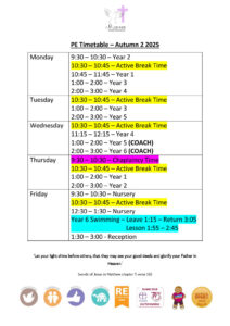 PE Timetable – Autumn 2 2025